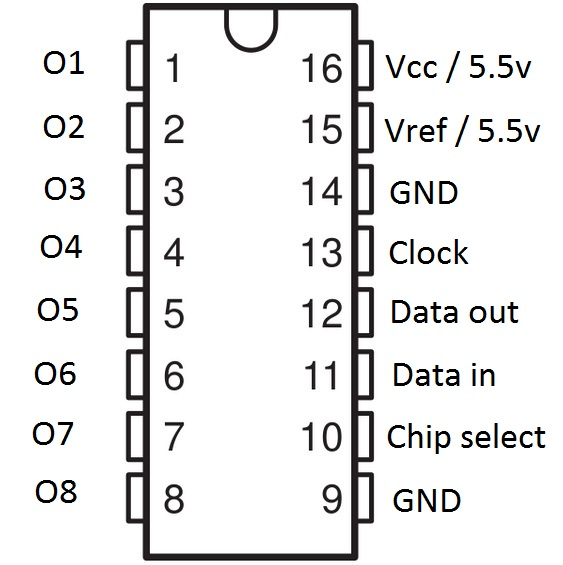 - For each output pin in order from 1 to 8: