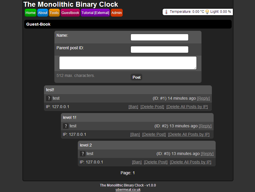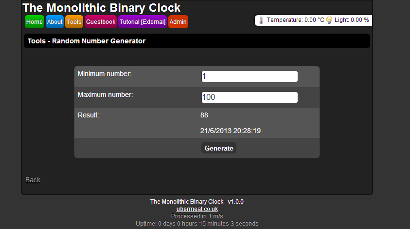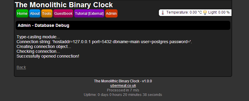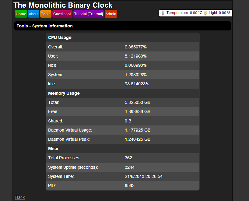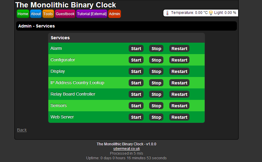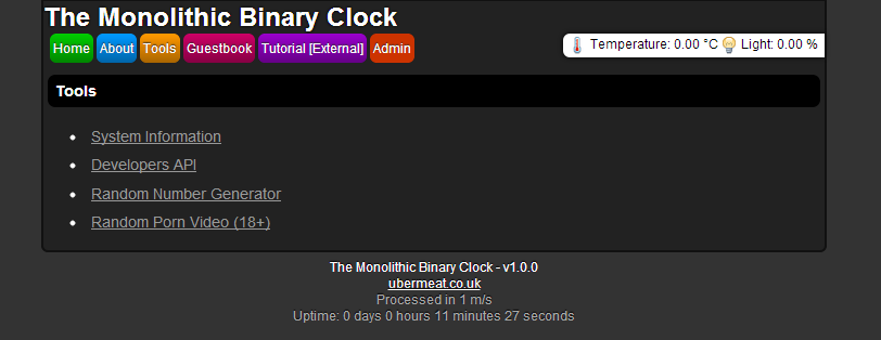Binary clock's homepage, served by the program its self. Written in C++ and multi-threaded using C++ 11.