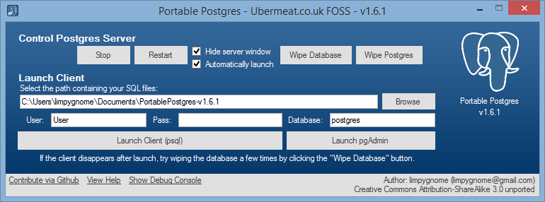 A Windows application allowing for creating and managing a portable Postgres (PostgreSQL) database server, for development.