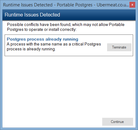 - Detection of runtime issues, such as multiple instances of Postgres running and port binding.